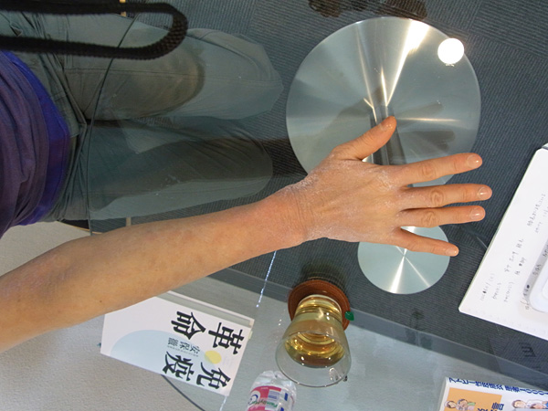 脱ステロイドでは皮膚の炎症を和らげるローション湿布がスキンケアの中心となることから、ご自宅で出来るよう、実際に店舗でローション湿布を体験して頂きました。